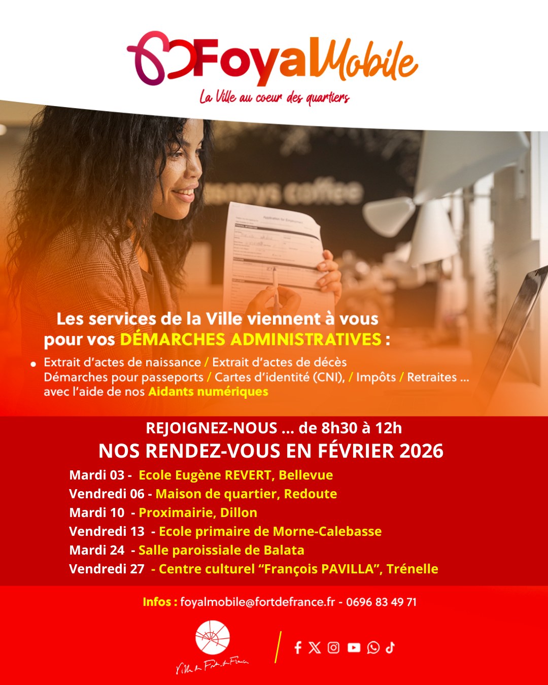 Élections municipales 2026 Inscrivez-vous sur les listes électorales avant la date limite ! À l’approche des élections municipales et communautaires qui se dérouleront les dimanches 15 et 22 mars 2026, la Ville de Fort-de-France rappelle à l’ensemble des citoyens qu’il est indispensable d’être inscrit sur les listes électorales pour pouvoir voter. L’inscription n’est pas automatique, … Lire la suite