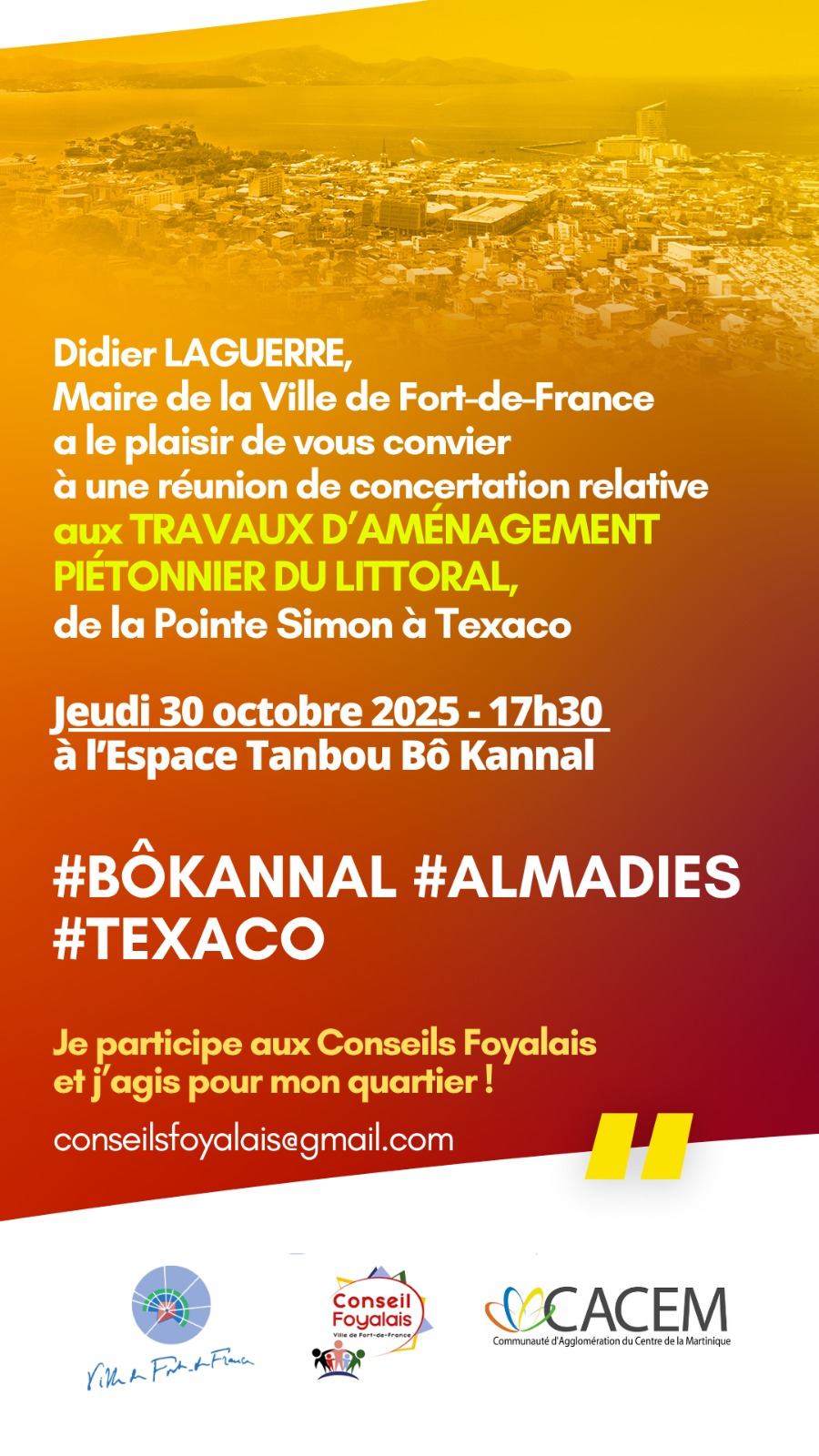 A l’occasion des Journées européennes du Patrimoine, la Ville de Fort-de-France vous invite à découvrir le Théâtre Aimé CESAIRE, le Bureau d’Aimé CESAIRE et la Maison d’Aimé CESAIRE … du 15 au 21 Septembre 2025. Pour les visites en bus, inscription obligatoire au 0596 59 60 69 par whatsapp au 0696 41 30 45 ou … Lire la suite